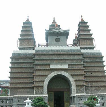 内蒙古金刚座舍利宝塔,位于呼和浩特市旧城五塔寺街。原为慈灯寺(俗名五塔寺)内的一座建筑。寺宇早就损毁,惟此宝塔巍然屹立。塔系砖石结构,通高13米,平面为长方形。金刚座建在台基上,其下层为须弥座,束腰部分有砖雕狮、象、法轮、金翅乌和金刚杵等图案花纹;座身下半镶嵌蒙、藏、梵3种文字所书之《金刚经》经文,刻工细致,字体工整。 >> 详细介绍