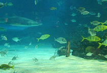河北海洋水族馆,水族馆分为淡水热带鱼展区、珊瑚礁展区、黄海渤海鱼展区、海龟池、海豹池、表演池、鲨鱼池、环游池、触摸池及海底花园等十一个展区。共展出哺乳类、两栖类、鱼类、贝类和无脊椎类海洋生物300余种,8000余尾。 >> 详细介绍